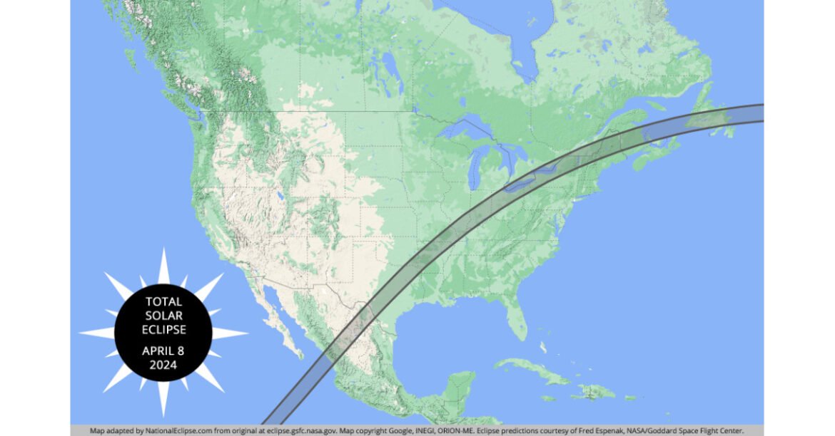 Now less than three months away, a total solar eclipse will occur in North America on April 8, 2024. The “path of totality”—the narrow strip of land within which the eclipse will be “total”—will stretch from southwest to northeast, traveling through Mexico, the United States, and Canada. In the U.S., the path will cross 13 states, entering the country in Texas and exiting in Maine.