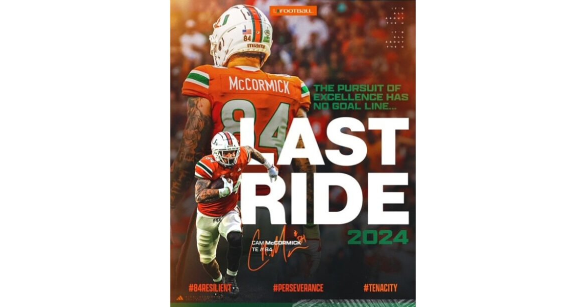 In a groundbreaking announcement, University of Miami Tight End Cam McCormick has announced he will return for one more season of college football – his fourth playing season – in an unprecedented ninth year of eligibility.