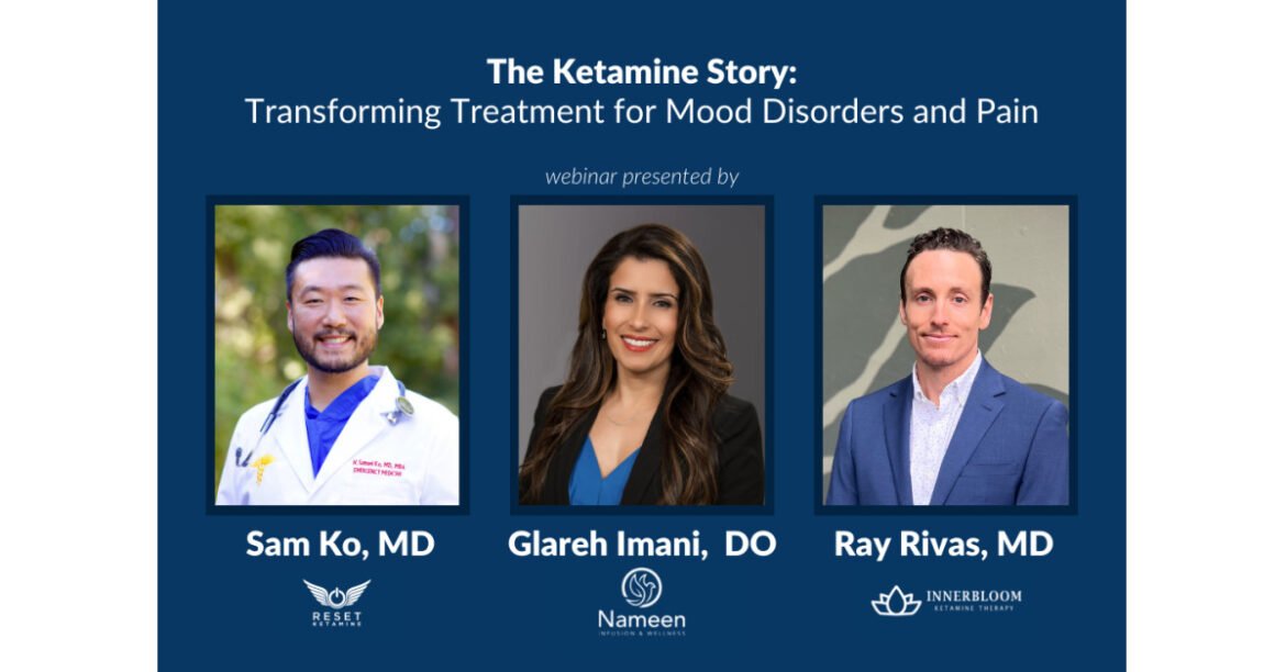 This free webinar will feature a panel of distinguished experts, including Dr. Glareh Imani, DO a board-certified emergency medicine physician with a rich academic background & founder of Nameen Infusion & Wellness; Dr. Ray Rivas, MD, founder of Innerbloom Ketamine Therapy, who brings a unique perspective shaped by his journey from trauma surgery to mental health care; and Dr. Sam Ko, MD, a leading figure in ketamine therapy, known for his holistic approach at Reset Ketamine.