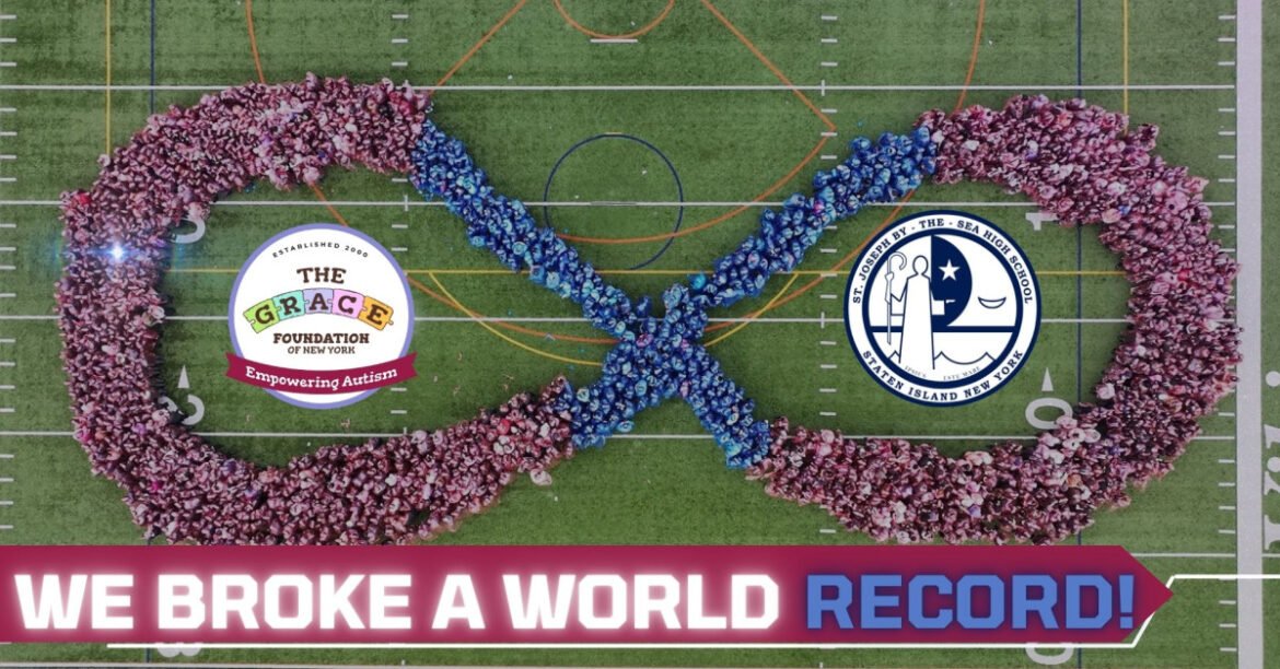 On Friday, January 26th, the Staten Island nonprofit organization, The GRACE Foundation, alongside St. Joseph by-the-Sea High School, broke the Guinness World Record for the World’s Largest Human Infinity Symbol to raise awareness surrounding autism. It marks the Second World Record for The GRACE Foundation, the first for St. Joseph by-the-Sea High School, and the third World Record set in the borough.