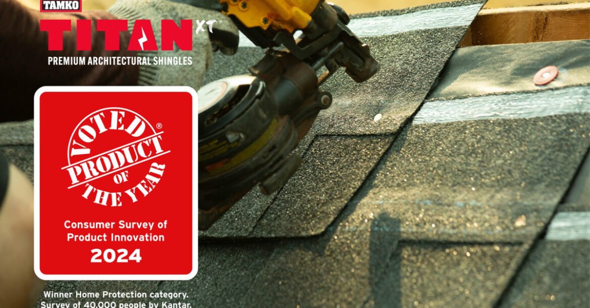 TAMKO Building Products, LLC is pleased to announce that its Titan XT® shingle has been named the 2024 “Product of the Year” winner in the Home Protection category by Product of the Year USA – the nation’s largest consumer-voted award for product innovation. The brand accepted the award yesterday during a special ceremony in New York City.