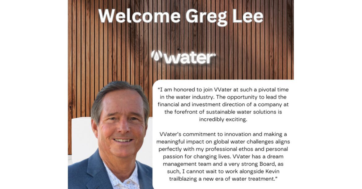 Greg Lee stated, “I am honored to join VVater at such a pivotal time in the water industry. The opportunity to lead the financial and investment direction of a company at the forefront of sustainable water solutions is incredibly exciting. VVater’s commitment to innovation and making a meaningful impact on global water challenges aligns perfectly with my professional ethos and personal passion for changing lives. VVater has a dream management team and a very strong Board; as such, I cannot wait to work alongside Kevin, trailblazing a new era of water treatment.”