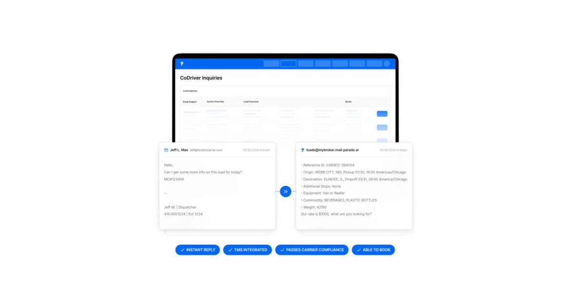 Parade, a leader in capacity management for freight brokerage, delivers its latest innovation, Capacity CoDriver, as a new generative AI feature expanding upon Parade’s existing integration with McLeod Software’s PowerBroker® TMS. This development represents a significant advancement in the freight brokerage industry, expanding the capabilities of Parade’s and McLeod’s collaborative technology. Building upon the digital freight matching infrastructure, this update aims to significantly boost the operational efficiency of both customer and carrier-facing teams within freight brokerages using large language models, setting a new productivity benchmark for operational excellence in freight management.