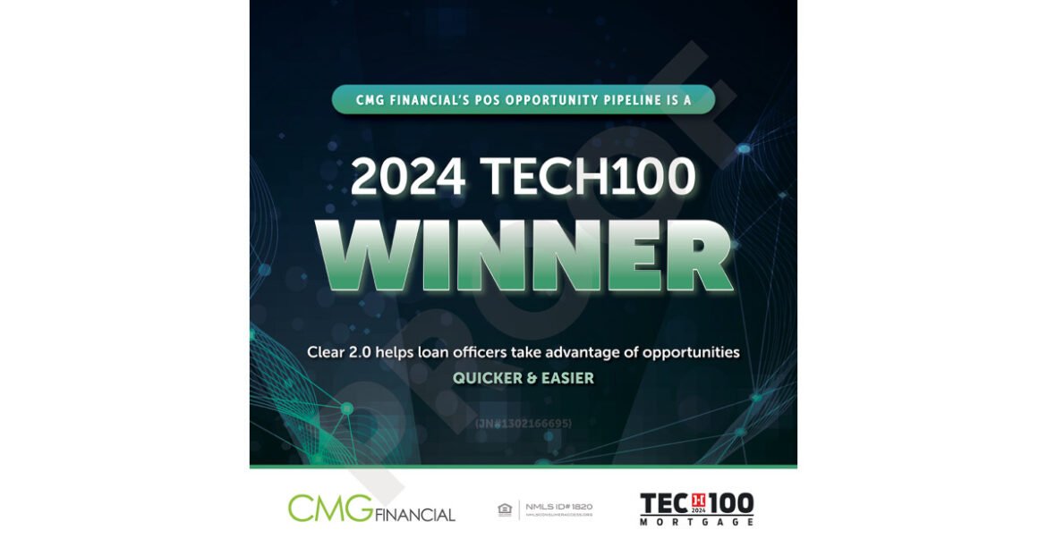 CMG Financial, a well-capitalized and privately held mortgage banking firm based in San Ramon, CA, has been recognized as a 2024 Tech100 Mortgage winner. The annual award, held by HousingWire, celebrates the most innovative and impactful organizations in the industry. CMG was recognized this year for its recent iteration of a POS opportunity pipeline.