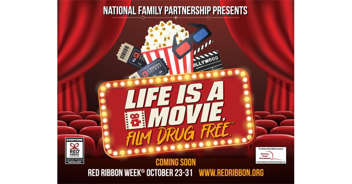In January, the National Family Partnership (NFP) unveiled its pick for the official 2024 Red Ribbon Week theme, “Life is a Movie, Film Drug Free”™. Each year, the National Family Partnership and the Drug Enforcement Administration (DEA) cosponsor the official Red Ribbon Week theme contest, inviting millions of Americans to submit a unique slogan that captures the essence and mission of the campaign. This theme will be the main focus of a new official line of Red Ribbon Week-themed products and merchandise supplied by NIMCO, Inc. – the official merchandiser and partner of the NFP.