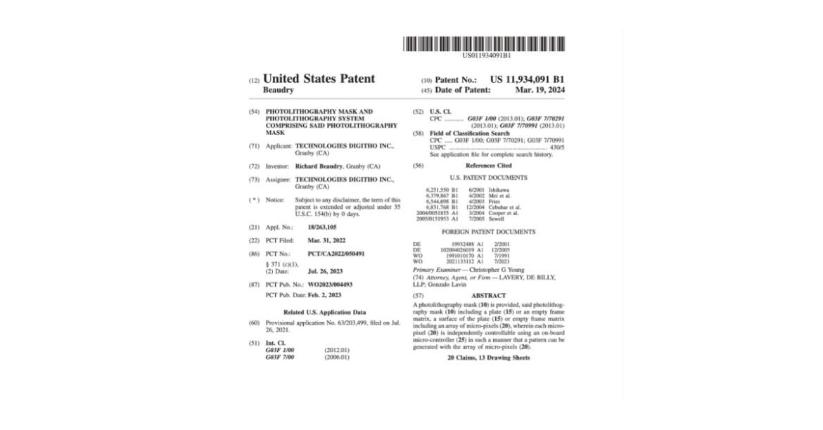 Transforming Photolithography: Digitho Technologies Inc. Receives Inaugural U.S. Patent for Programmable Photomask Technology