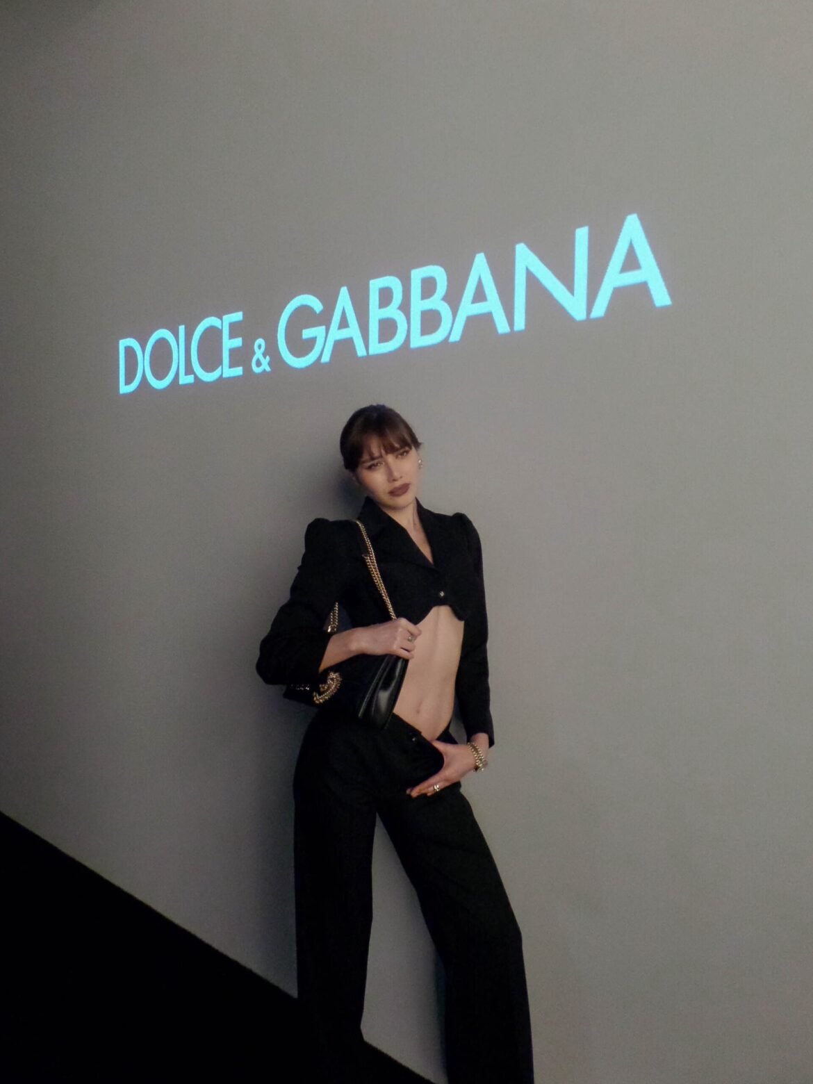 I wore this amazing D&G super cropped blazer and pant suit to the Dolce&Gabbana Beauty x Saks Fifth Avenue launch party at Spring Studios. It was a truly Italian and seductive night filled with champagne and pasta. Decadent, just like the new D&G Beauty makeup line. It’s all about glamour and feeling bold. You are going to love it.