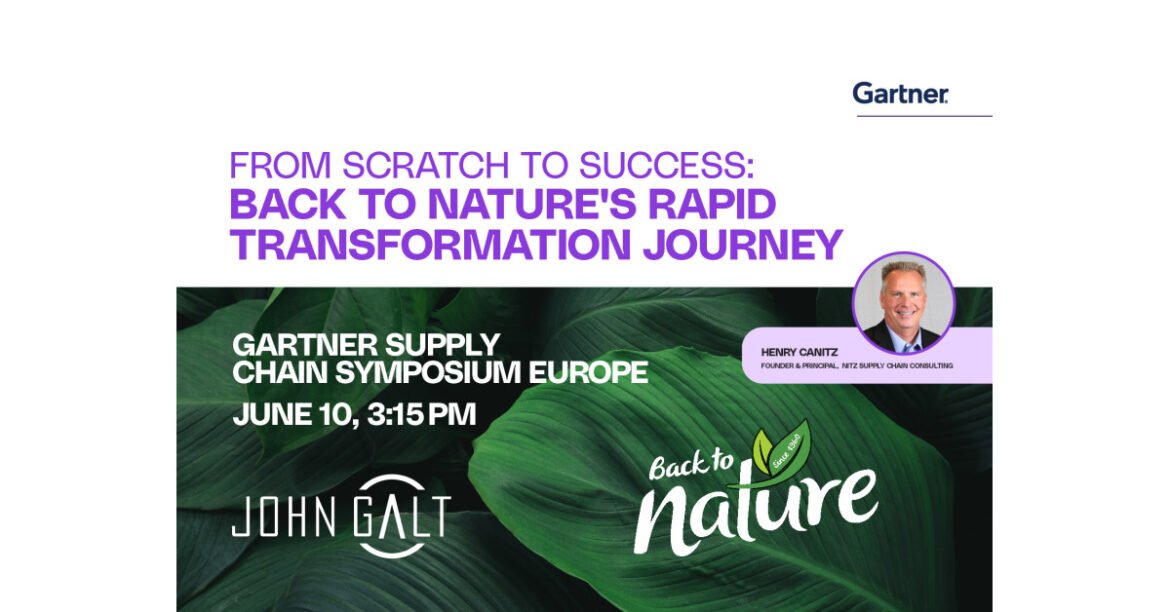 John Galt Solutions, a global leader in automating supply chain planning to empower businesses to make better decisions faster, invites attendees of the 2024 Gartner Supply Chain Symposium/Xpo in Barcelona, Spain, to the session, “From Scratch to Success – Back to Nature’s Rapid Transformation Journey.” This live presentation on June 10, 2024, will be led by Henry Canitz, consultant at Back to Nature and Founder and Principal at NITZ Supply Chain Consulting, in partnership with John Galt Solutions.