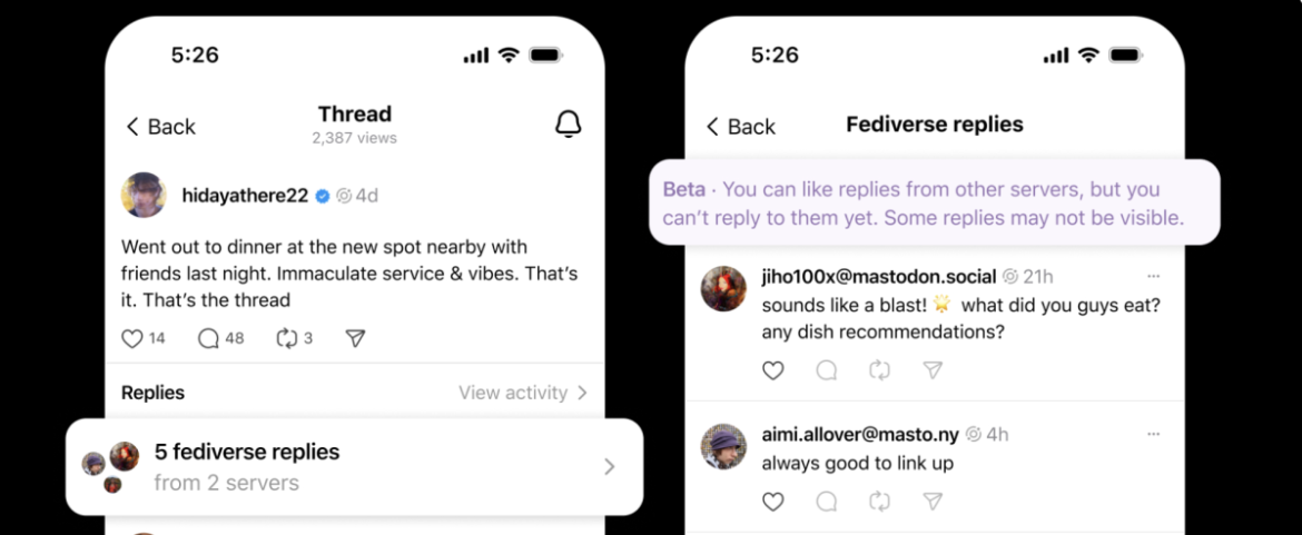 Meta just made an important update for Threads users who are sharing posts to the fediverse. The company began allowing users to opt-in to sharing their Threads posts to Mastodon and other ActivityPub-powered services back . But the integration has been fairly limited, with Threads users unable to view replies and most other interactions to their posts without switching over to a Mastodon client or other app.