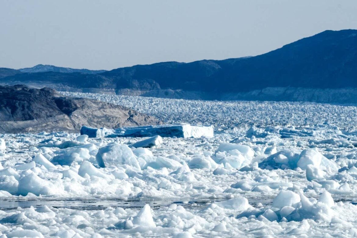 Icebergs floating in the Nuup Kangerlua fjord in Greenland