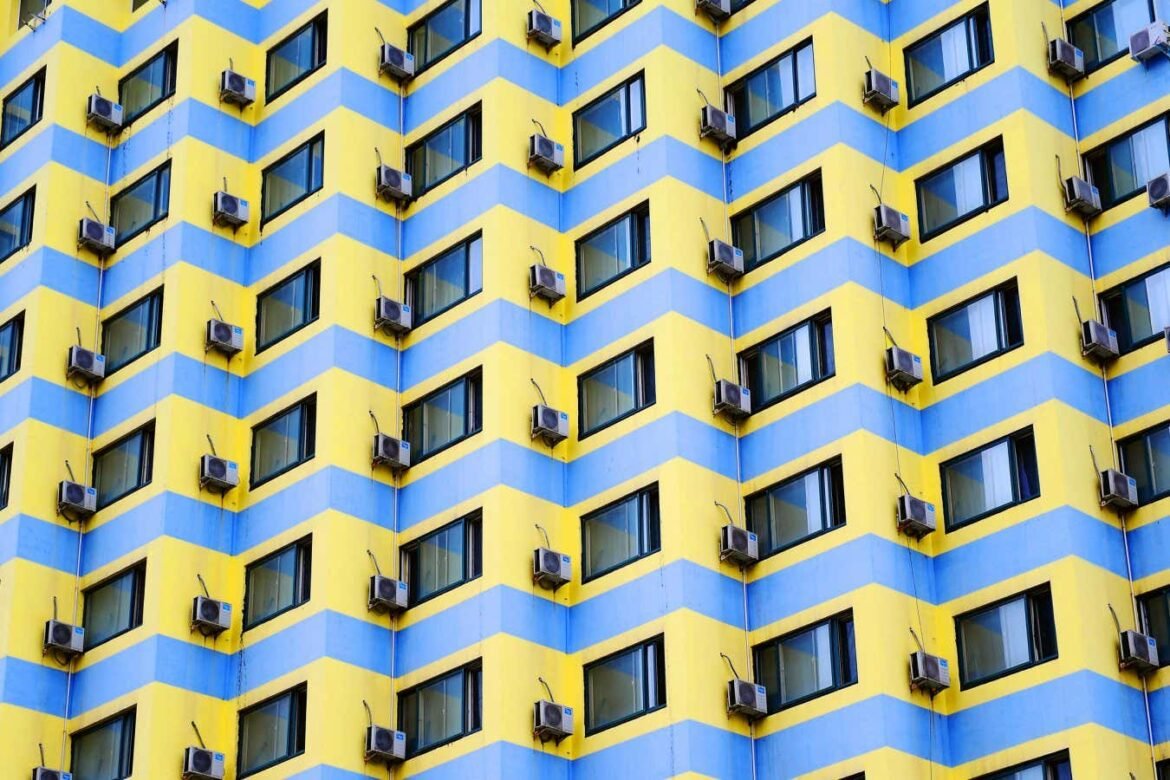Air-conditioning units, which often use HFC gases, on a building in Shenyang, China