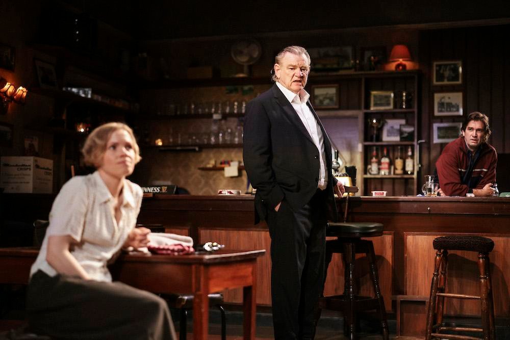 Kate Phillips plays Valerie with a soft touch that hides her feeling of being a newcomer. When she orders white wine, her normal Dublin drink, Brendan has to go into the main house to find an old bottle left over from some previous celebration, and when she needs the toilet he has to take her there because he’s never got around to building a ladies loo next to the pub room. When Phillips tells her story, the men become immobile, gripped and shocked by the awfulness of her experiences, and feeling the pain of her restrained but exceptionally moving tale. She’s also there at the end of the evening, sharing with Gleeson a brief moment of human connection. A great finishing touch to a production that is both haunting and brimming with emotional truth.