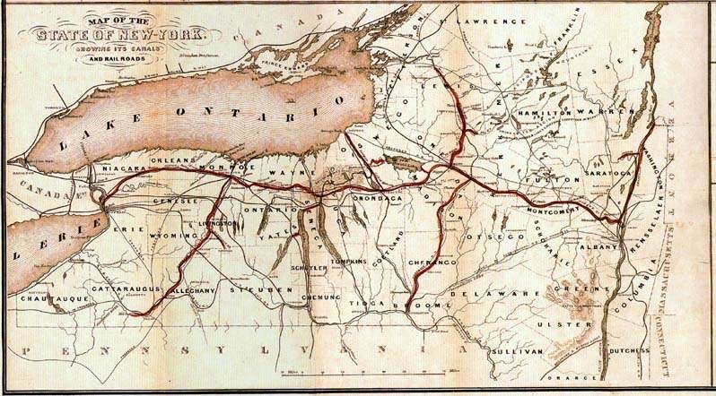The canal system of New York State is a complex network of natural and man-made waterways that connect two of the Great Lakes that border the state with the Atlantic Ocean. The canals also incorporate Lake Champlain and the Finger Lakes. The development of this system bridges several generations and gives the canal system a genealogy of its own.
