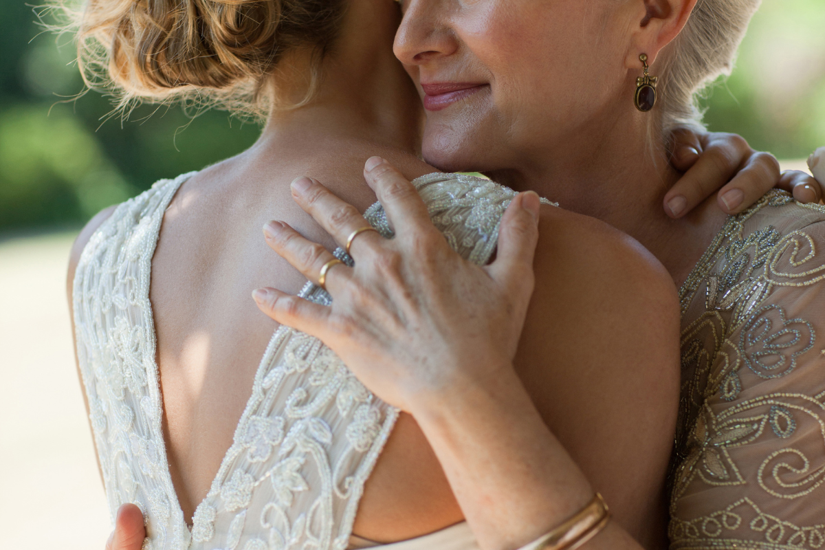 • Coordinate with the palette & formality. Ask for the couple’s color palette and dress code (formal, black-tie optional, garden chic). Many bridal guides suggest Moms echo, not duplicate, the wedding colors—choose a neighbor shade (e.g., if bridesmaids wear dusty blue, you might wear slate, steel, or midnight). This keeps photos harmonious without turning you into a twinning extra. davidsbridal.com