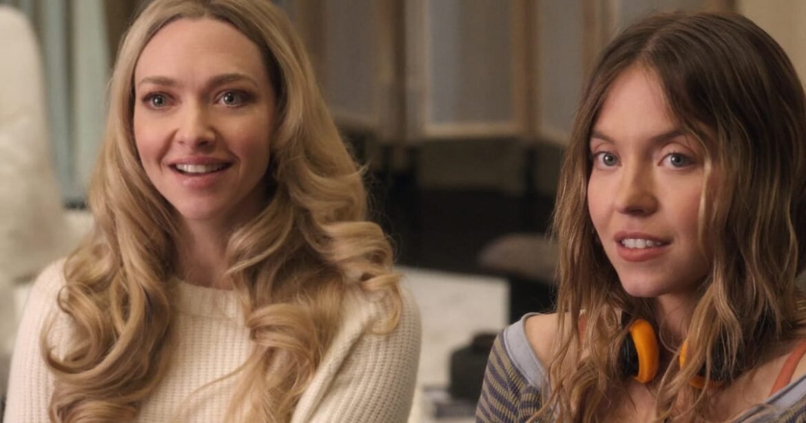 In a manicured, festive vision of the New York suburbs, Millie (Sydney Sweeney) lands a gig as a housemaid for Andrew and Nina Winchester (Brandon Skelnar and Amanda Seyfried) plus their daughter Cecelia (Indiana Elle). The home’s other employee is monosyllabic groundskeeper Enzo (Michele Morrone, of Netflix’s similarly soapy and successful 365 Days franchise and Feig’s Another Simple Favor) who seems to instantly dislike Millie for unknown reasons that will be conveniently revealed in the film’s third act. Over a needlessly long 131 minute runtime, Millie faces off against the increasingly erratic Nina while an attraction grows between her and Andrew.