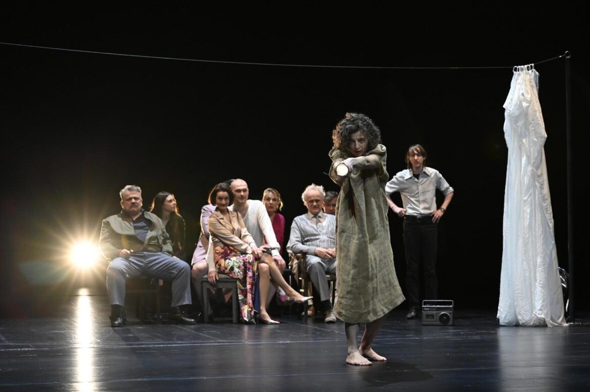 Crimp’s version has now received its German language premiere at the municipal theatre in Bremerhaven. The production ran for two hours without interval. The company’s head of theatre, Peter Hilton Fliegel, created the translation and served as production dramaturg. Director Tobias Rott located the plot and characters in the latter part of the 20th century, to judge by the music the characters listened to occasionally on a portable radio cassette recorder. The set by Cornelia Brey made use of the entire stage space, which felt vast, consisting of three distinct areas: an indoors area, a separate cubicle with glass walls, and an outdoors area assumed to represent the shore of a lake. Those elements were arranged on a revolve, which turned ever so slowly to efficiently accommodate scene changes (the indoors area had moved mainly out of view, and the lake area had come fully into view as the scene changed from one to the other. For the changes of time, the revolve turned at much higher speed, with the actors dancing to the music chosen for that passing of time. The initial scenes of the play established the languor enveloping the characters, also allowing time for actors and audience alike to get used to the acoustics of the space without amplification.