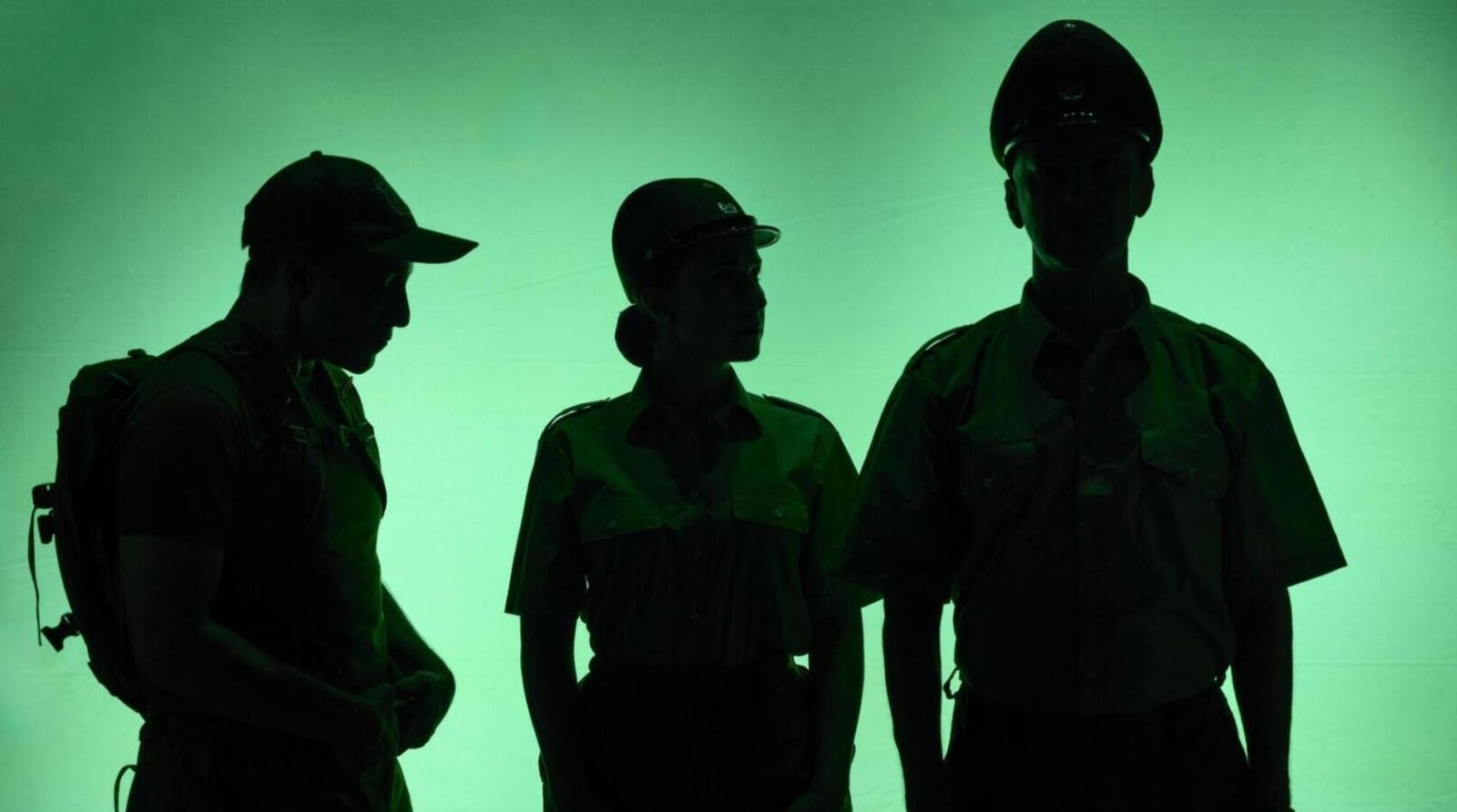 The interlinking of these three stories is expertly done, and the results are brutally funny. Scenes of the desperate Hausman company executive team in their boardroom are projected on a video screen, as they bemoan the financial situation the company is in. They are, nevertheless, unable to provide a credible solution to the problem. The neighbours try and work out what their options are but again fail to act. There are arguments and debates but no real plan of action. Both groups are stuck in a culture of inertia where talking replaces doing. The police unit bicker – with one animated rookie member determined to produce his own version of the script despite the protests of his two more experienced colleagues. As he looks to go off the rails, they plan to take over the planned attack, but nothing goes quite as planned – and a human stampede prevails.