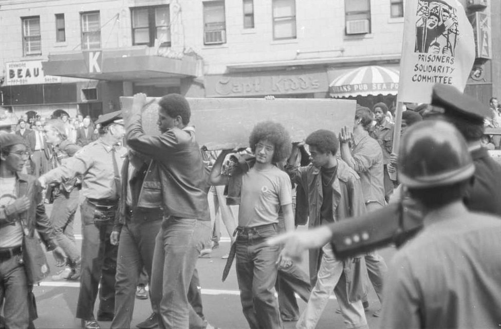 Immediately following news of the tragedy, The Prisoners Solidarity Committee and Youth Against War and Fascism gathered outside of Rockefeller’s office on West 55th Ave to protest the actions of Governor Nelson Rockefeller and the New York State Police.